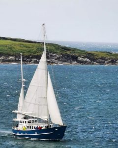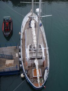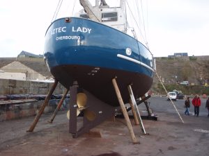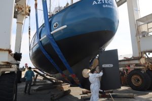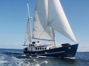 Aztec Lady est également un bateau solide, sur lequel on navigue en toute confiance. Sa grande hauteur de pavois rassure les parents avec enfants et protège le pont des fortes vagues et des embruns. Le poste de timonerie intérieur permet de barrer à l’abri et au chaud. Et malgré sa robustesse, ce grand ketch n’en demeure pas moins un excellent voilier au comportement très marin.